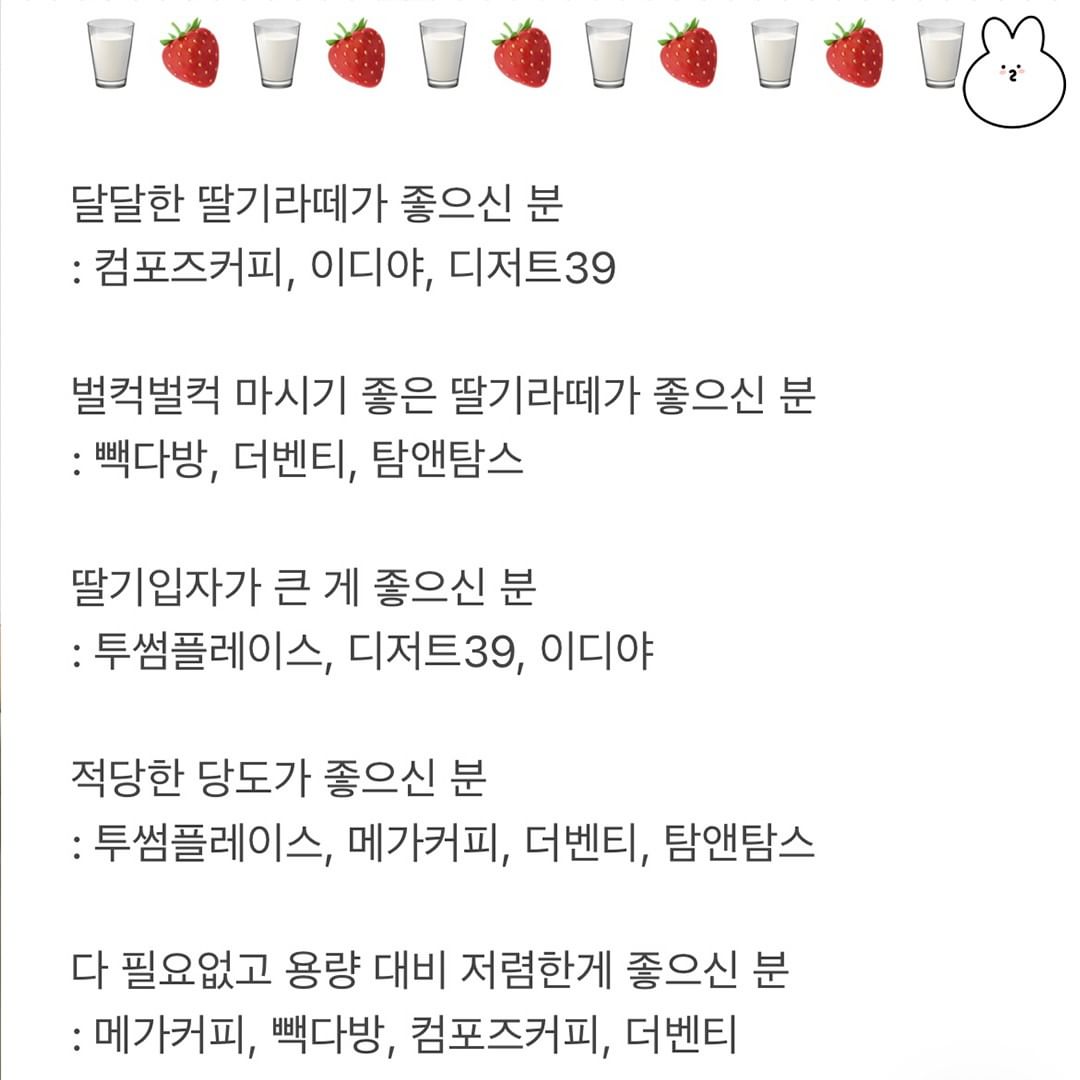 🍓 적당한 당도의 딸기 라떼가 땡긴다면 :